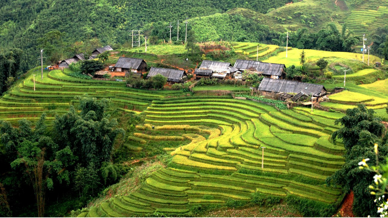 Along the National Highway 4D toward the Southeast, it takes about 8 km from Sapa town to Ta Van village. In there, visitors will have the opportunity to learn more about style and lifestyle of the Giay. Road going to Ta Van village is small, narrow and it is a cat-track. The two sides are the fertile terraced fields dotted with green of young corn and rice.
